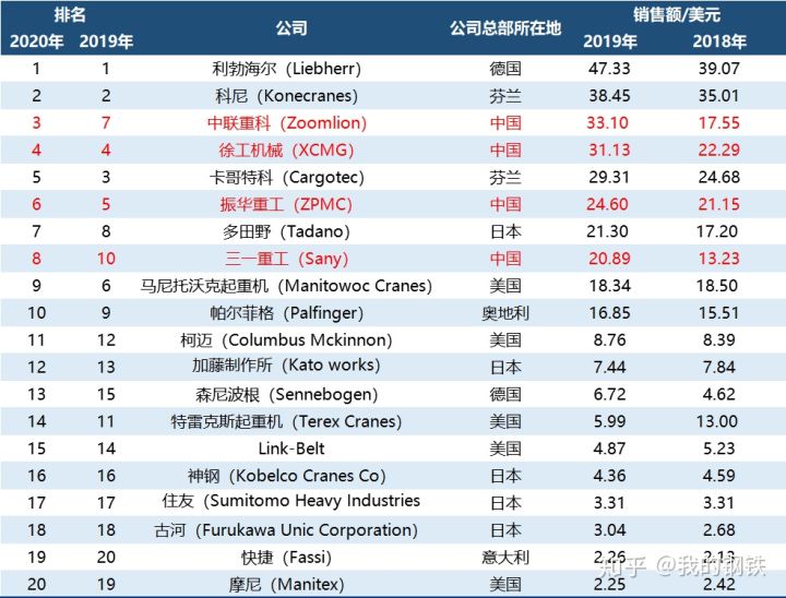 2020全球起重機械制造商20強榜單出爐中國第一